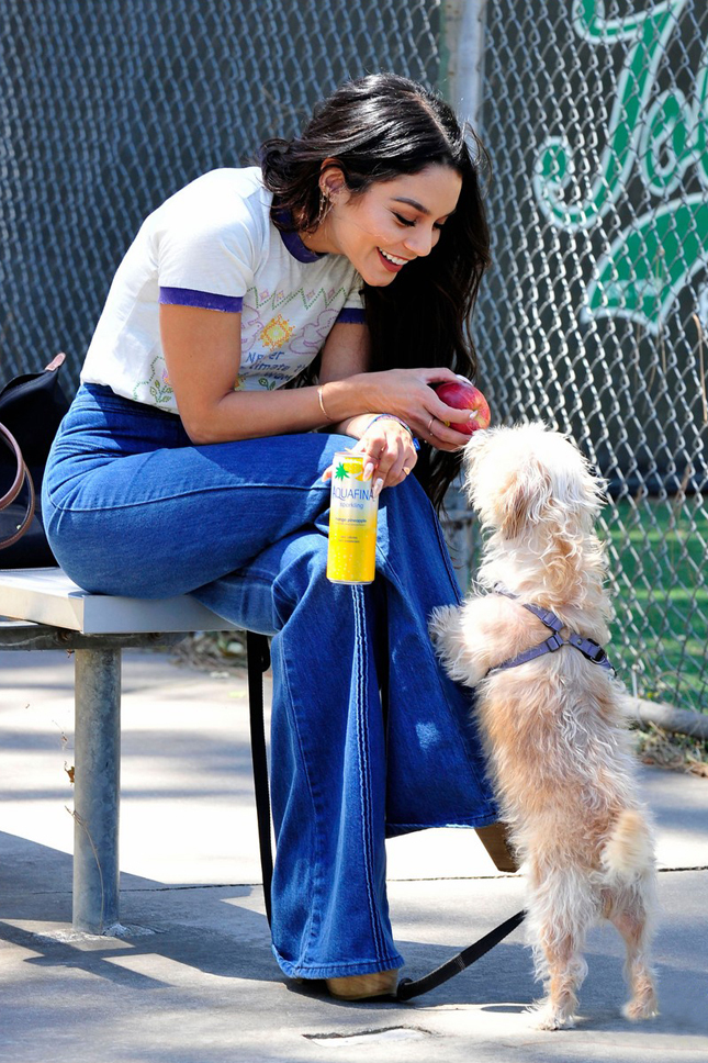 Ванесса Хадженс со своей собачкой Дарлой в Малибу